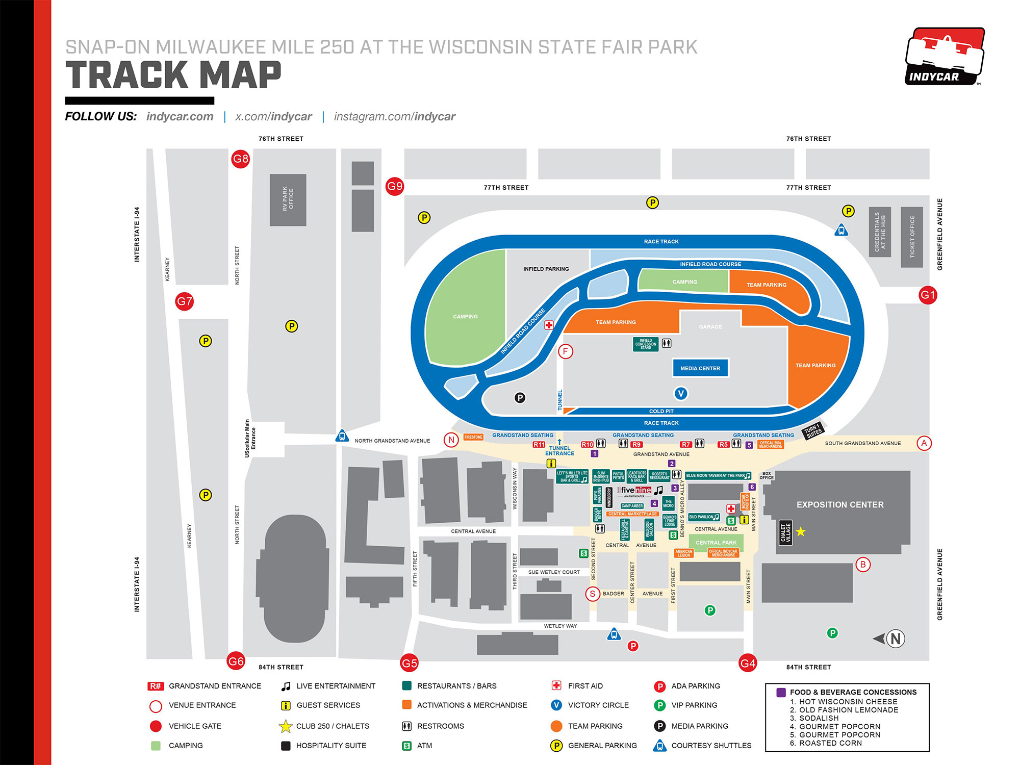 The legendary Milwaukee Mile on the grounds of the Wisconsin State Fair Park in West Allis, Wisconsin is one-mile oval that truly drives more like a road course because of the 9-degree banking in the turns, which produces some of the most exciting racing. Drivers can't go flat out on the course, which creates overtaking opportunities in the turns as well as the straights. The Mile opened in 1903 and little has changed to the configuration.